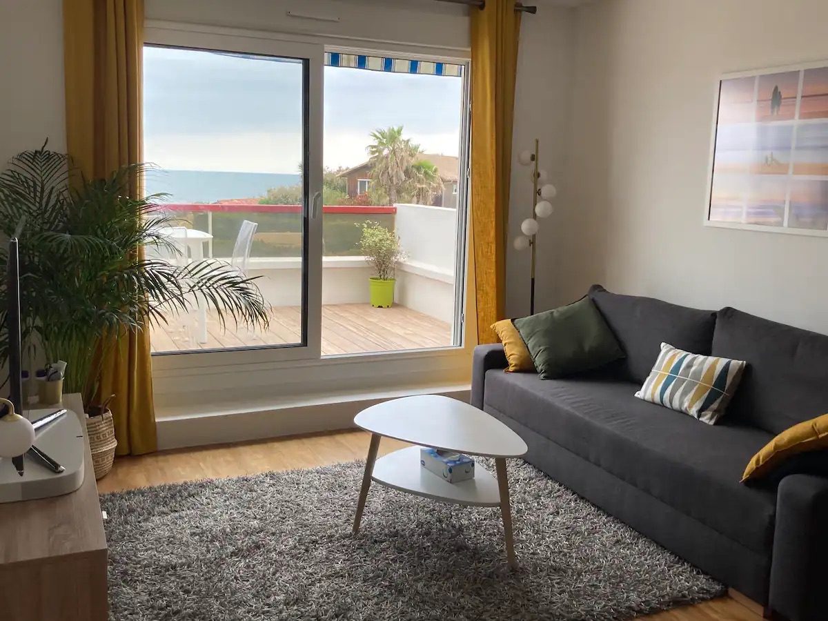 Appartement classé 3* (par l’organisme Atout France) pouvant accueillir 4 personnes (un lit double 140 cm et 1 canapé lit 140cm ), juste à coté des plages de Marbella (50m), Milady (100m) et Côte des basques (500m).